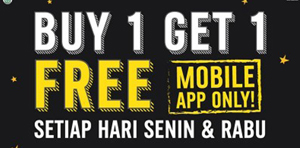 Dapatkan promosi beli 1 gratis 1 setiap order pizza via mobile app.