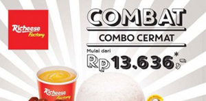 Combat (Combo Cermat) dari Richeese Factory! Harga paket mulai dari Rp13.636. Tambah minum dengan Rp3.636.