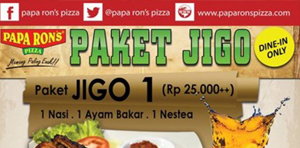 Datang ke Papa Ron's dan nikmati Paket Jigo dari Papa Ron's Pizza! Paket Jigo 1 & 2 harga cuma Rp 25.000.