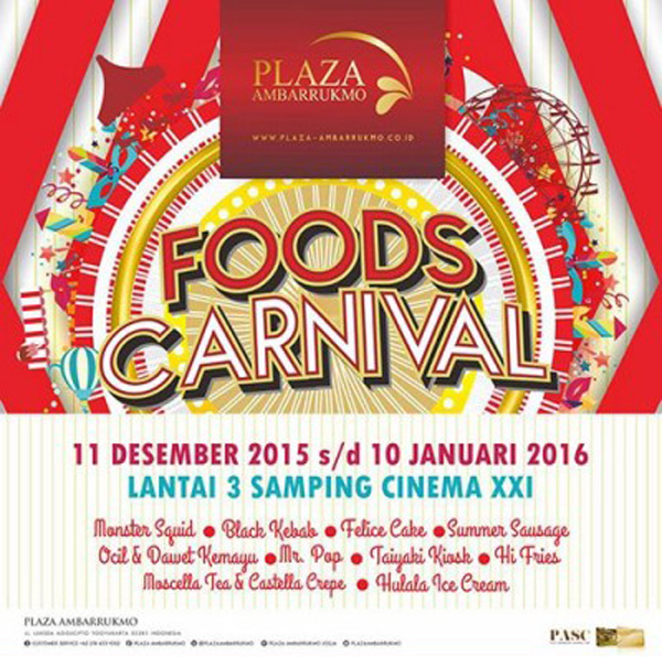 Mulai 11 Des 2015 - 10 Januari 2016 di lt3, di samping Cinema XXI Plaza Ambarrukmo, hadir beragam suguhan kuliner di Foods Carnival.