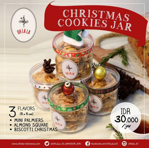 Ceriakan suasana perayaan Natal sambil menikmati Christmas Cookies Jar dari Oh La La! Tersedia 3 pilihan rasa dengan harga hanya Rp 30.000/jar