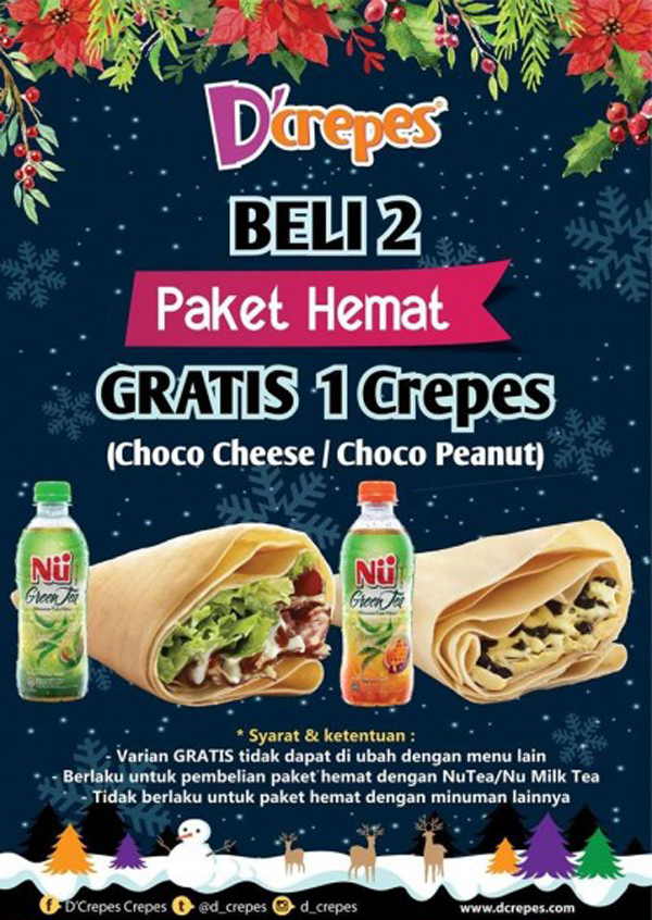 TAGS: D'crepes Promo Beli 2 Paket Hemat Gratis 1 Crepes D' Creps Paket Natal