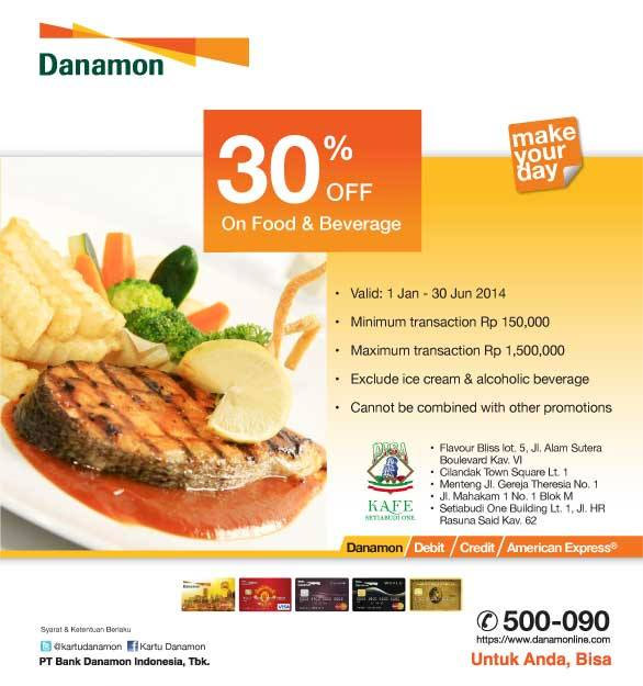 Nikmati Diskon 30% Untuk Santap di Pisa Kafe Setiabudi One dengan menggunakan Kartu Kredit Danamon.