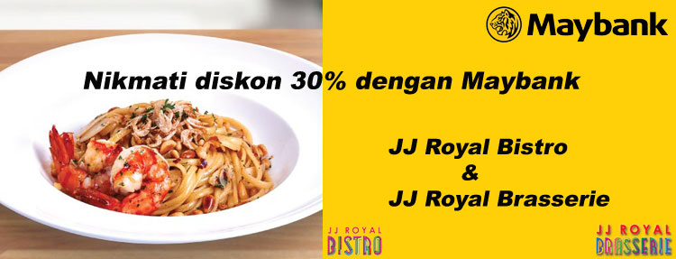 Nikmati diskon 30% dengan Maybank Kartu Kredit di JJ Royal Bistro dan JJ Royal Brasserie