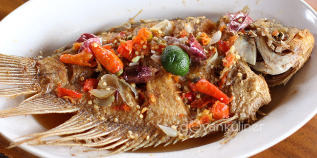 Makanan : Udang Bakar Madu Gurame Cobek Gurame Goreng Ayam Goreng Kremes Kepiting Saus Padang Ayam Goreng Kremes Tauge Ikan Asin