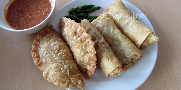 Sebenarnya disini makannya cukup lengkap, mulai dari nasi goreng sampai buntut rica-rica ada disini, tapi kami mau coba jajanan saja. Kami pesan arem-arem, pastel, lumpia goreng dan jongkong.