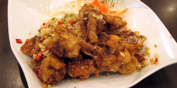 Kalau menu kepiting soka lada garam juga cukup favorit disini, kepiting yang dapat dimakan sampai kulitnya ini di goreng garing dengan disajikan dengan potongan bawang putih cukup banyak, tentu ini gurih dan cukup renyah kepitingnya.