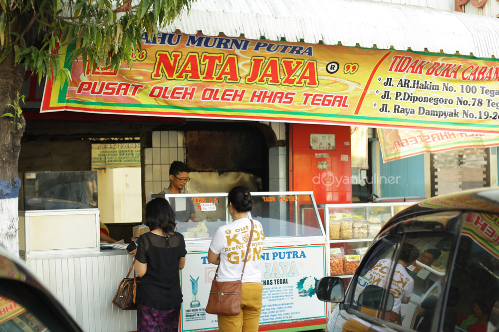 Tahu Murni Putra "Nata Jaya" Ini menjual tahu aci dan tahu pletok khas Tegal, tapi sayang banget tahu pletoknya lagi ga ada. Jadi kalau tahu aci itu tahu yang di potong menjadi bentuk segitiga lalu diberi adonan tepung pada bagian yang di potong lalu di goreng, sedangkan tahu pletok bentuknya lebih panjang, dibuat lebih tipis dan juga diberi adonan tepung.