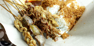 Setelah menikmati beberapa menu di mee time, saya tertarik dengan penjual sate kalong yang berjualan di samping mee time. Namanya Sate Kalong Mang Uus.