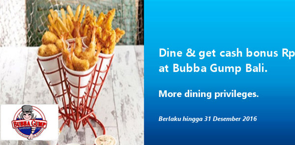 Nikmati cash bonus dari Kartu Kredit Citibank, untuk setiap transaksi yang anda lakukan di Bubba Gump Bali.