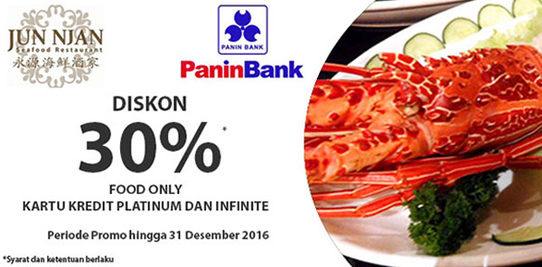 Dengan kartu kredit Panin, nikmati diskon hingga 30% (Food only) di Jun Jan Seafood Restaurant. Baca syarat dan ketentuan promo sebelum mengikuti.