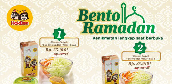 Hoka Hoka Bento siap memeriahkan suasana buka puasa anda dengan promo menu lezat Bento Ramadhan dengan promosi harga spesial mulai dari Rp. 35.910.