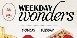 Oh Lala Cafe ada promo spesial weekday wonders dan kamu bisa santap hemat aneka menu pilihan dengan promosi beli 1 gratis 1 setiap hari senin hingga jumat.